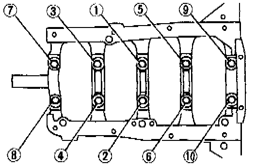 Tighten connecting rod bearing cap nuts in the following procedure: