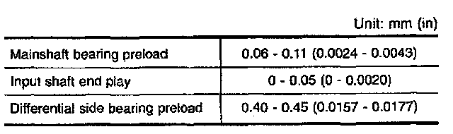 AVAILABLE SHIM-INPUT SHAFT END PLAY AND MAINSHAFT AND DIFFERENTIAL SIDE BEARING PRELOAD AND ADJUSTING SHIM