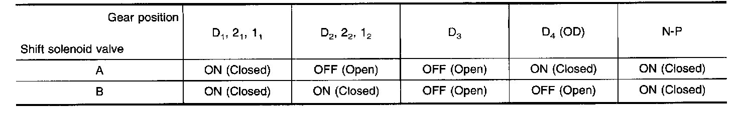The TCM activates shift solenoid valves A and B according to signals from the throttle position sensor and revolution sensor to select the optimum gear position on the basis of the shift schedule memorized in the TCM.