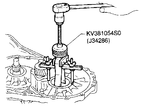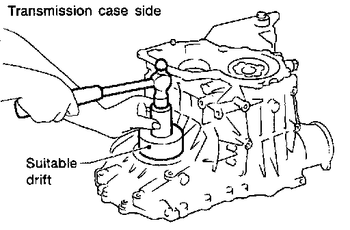 1. Install differential side bearing outer race without adjusting shim on transmission case.