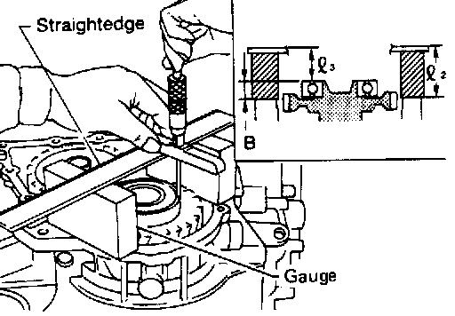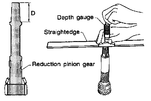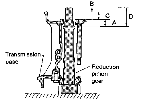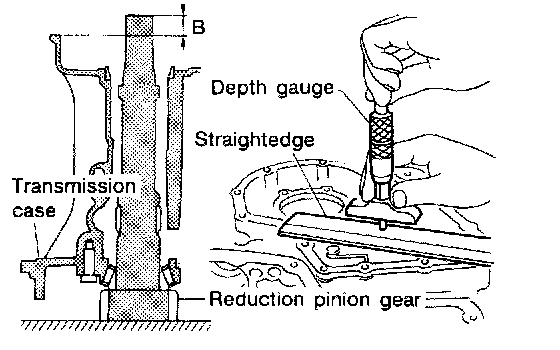 - Measure dimension "B" between the end of reduction pinion clear and the surface of transmission case.