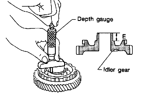 d. Measure dimension "E" between the end of idler gear and the idler gear bearing inner race mating surface of idler gear.