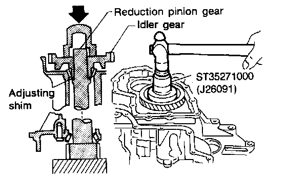 2. Select proper thickness of reduction pinion gear bearing adjusting shim using the following procedures.