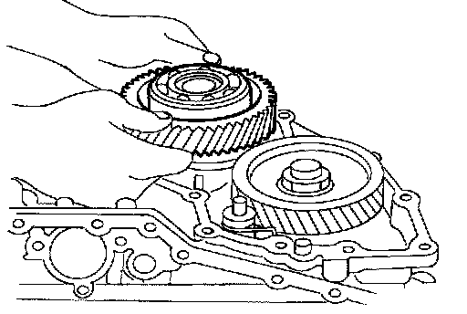 3. Install reduction gear and reduction gear bearing adjusting shim selected in step 2-e on transmission case.