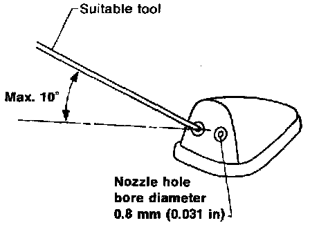 Adjust washer nozzle spray pattern by inserting a suitable tool as shown in the image as above.