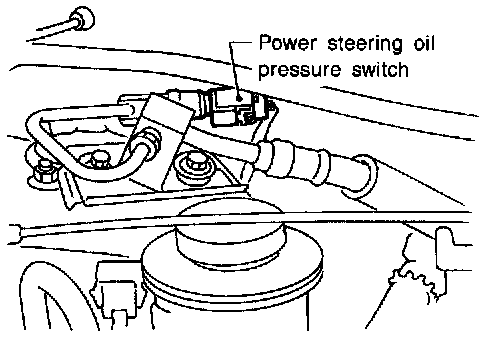 The power steering oil pressure switch is attached to the power steering high-pressure tube and detects a power steering load. When a power steering load is detected, it signals the ECM. The ECM adjusts the IACV-AAC valve to increase the idle speed and adjust for the increased load.