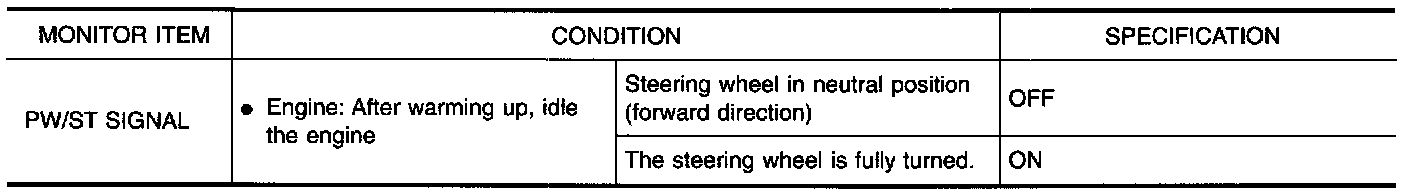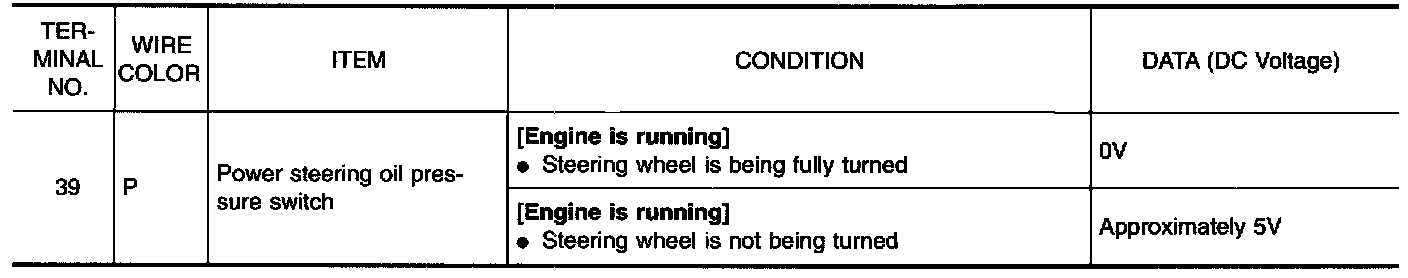 1. Disconnect power steering oil pressure switch harness connector then start engine.