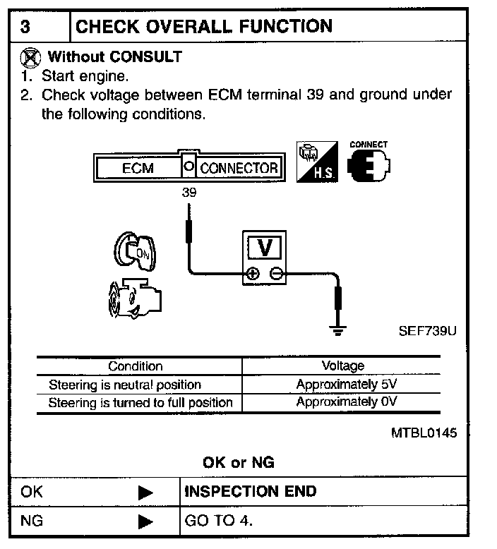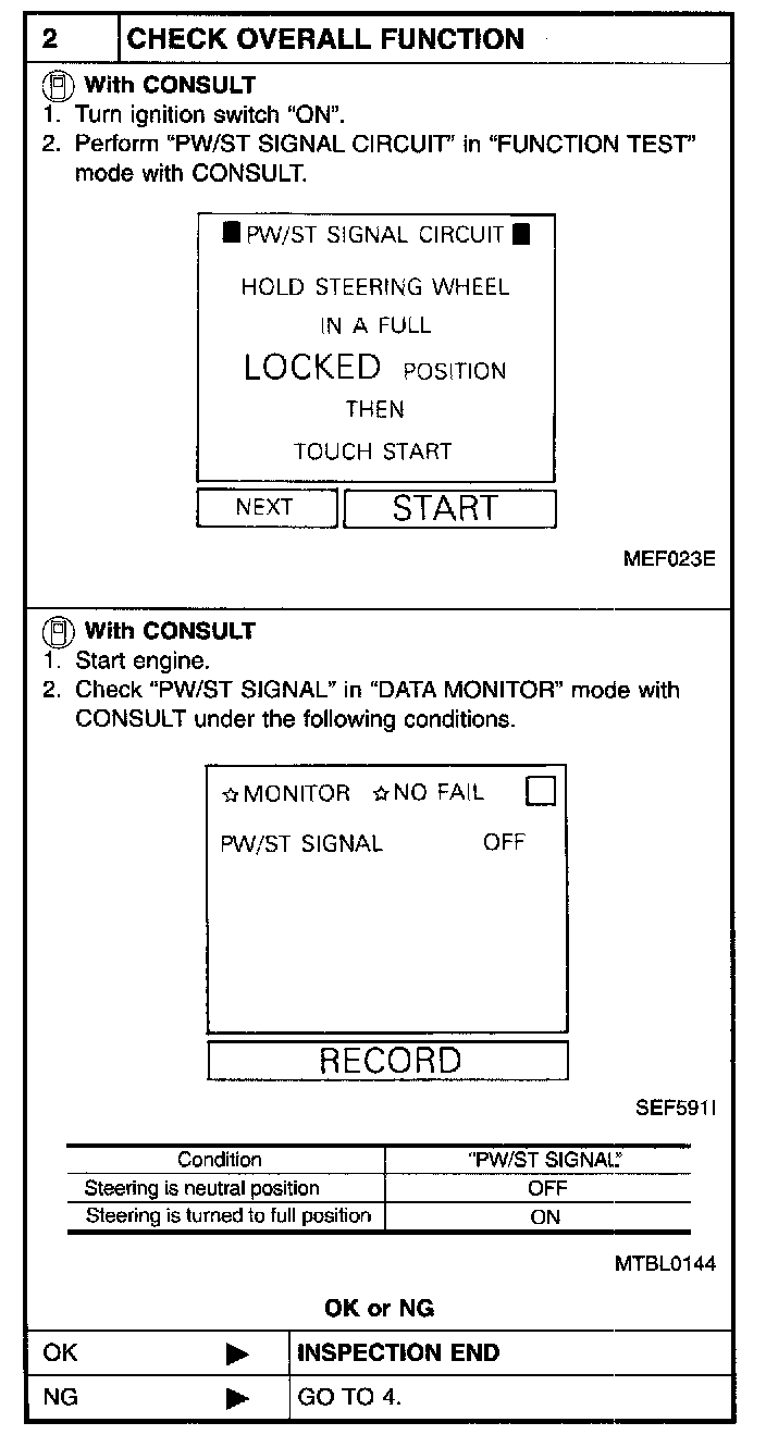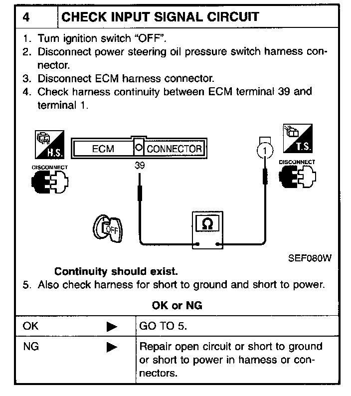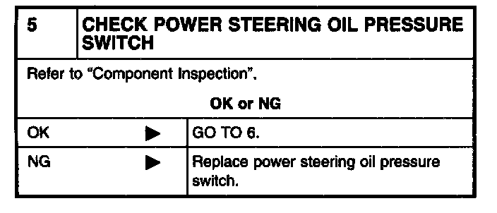 5 CHECK POWER STEERING OIL PRESSURE SWITCH: