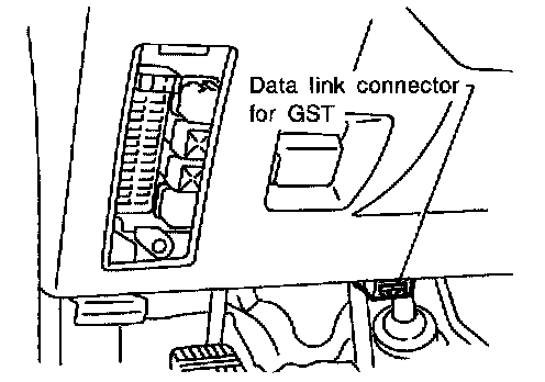 2. Connect "GST" to data link connector for GST. (Data link connector for GST is located under LH dash panel near the fuse box cover.)