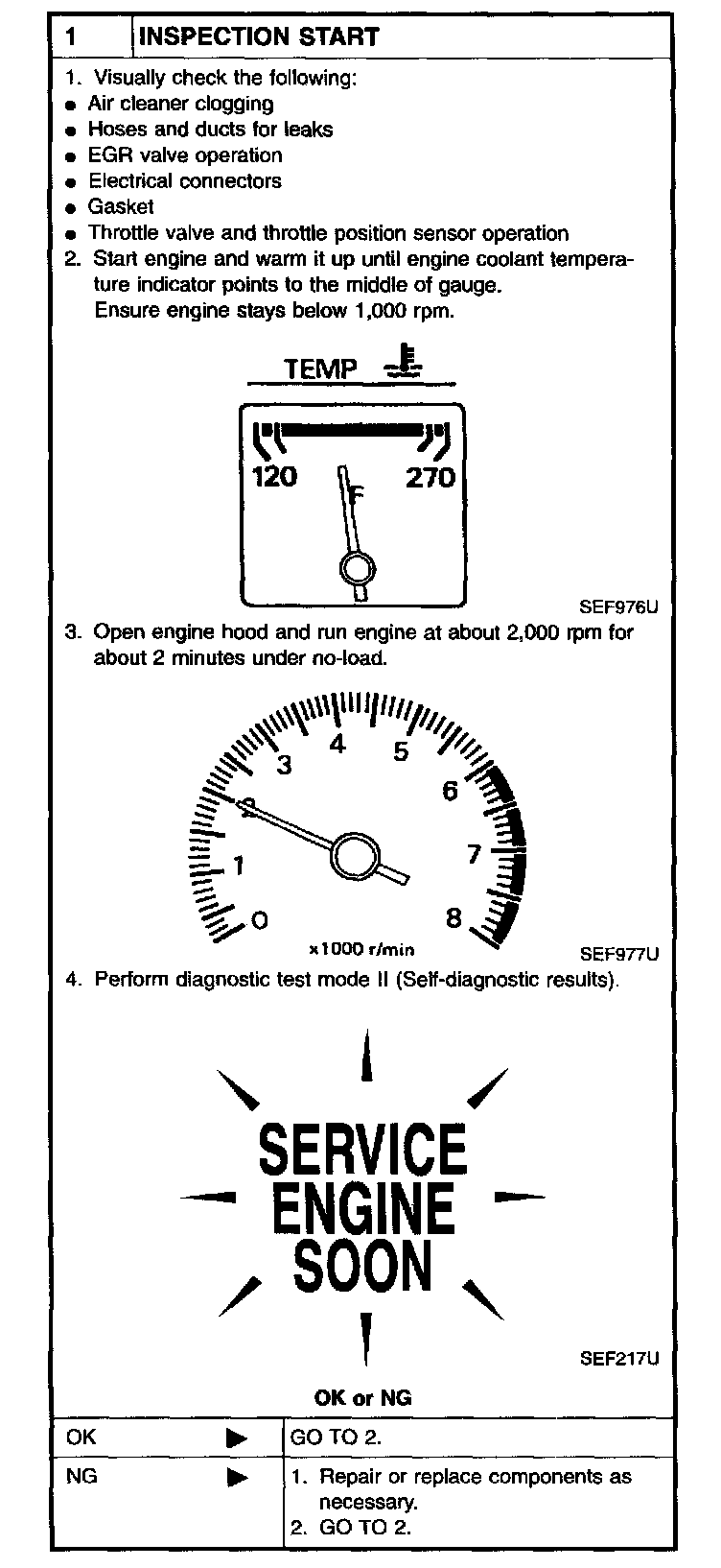 2. On air conditioner equipped models, checks should be carried out while the air conditioner is "OFF".