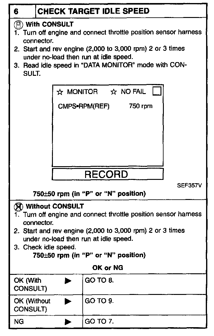 6 CHECK TARGET IDLE SPEED: