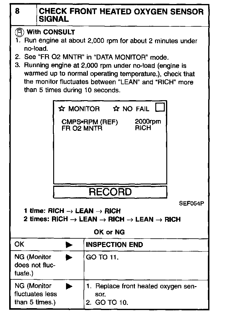8 CHECK FRONT HEATED OXYGEN SENSOR SIGNAL: