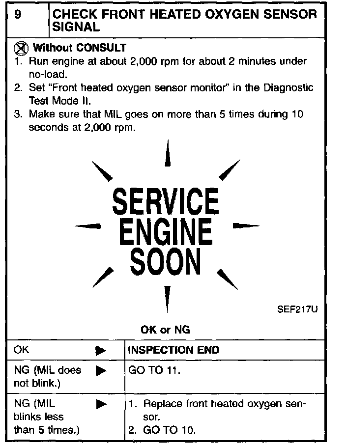 9 CHECK FRONT HEATED OXYGEN SENSOR SIGNAL: