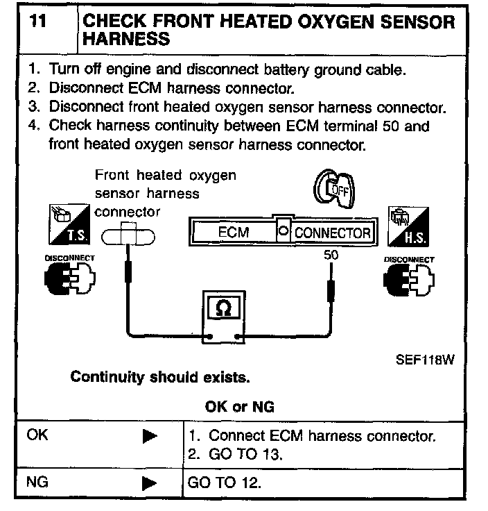 11 CHECK FRONT HEATED OXYGEN SENSOR HARNESSES:
