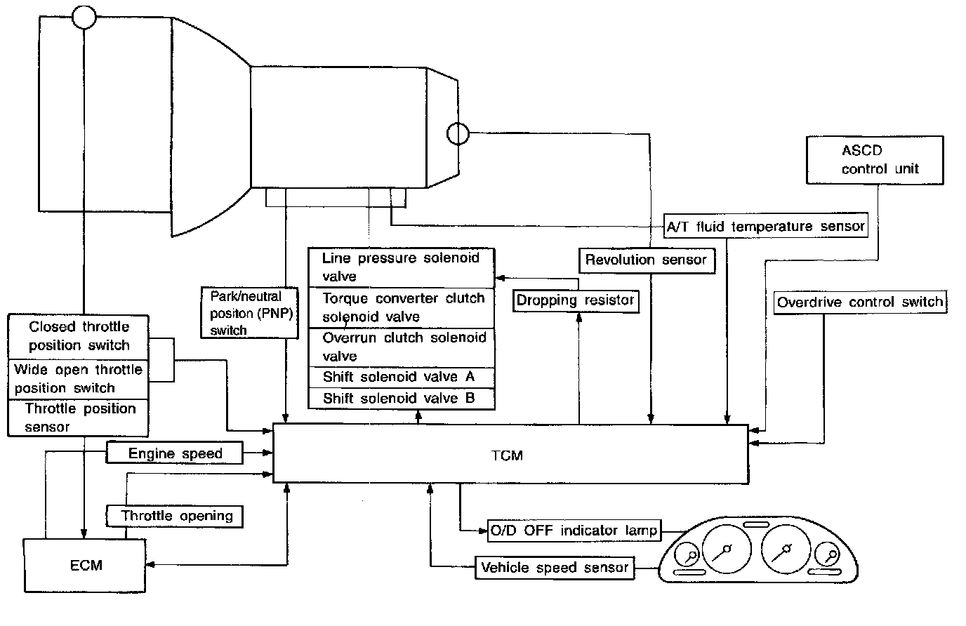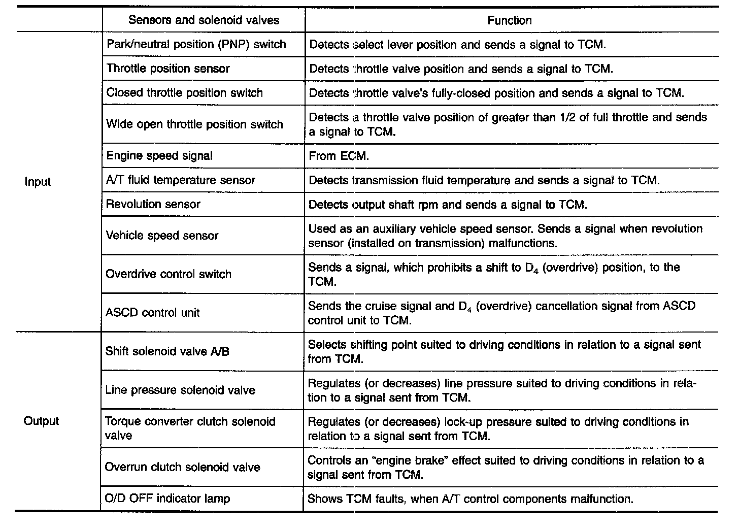 The automatic transaxle senses vehicle operating conditions through various sensors. It always controls the optimum shift position and reduces shifting and lock-up shocks.