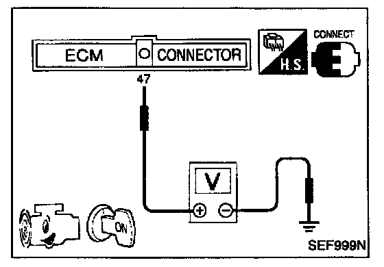 Check voltage between ECM terminal (47) and ground.
