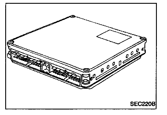 The ECM consists of a microcomputer, diagnostic test mode selector, and connectors for signal input and output and for power supply. The unit controls the engine.