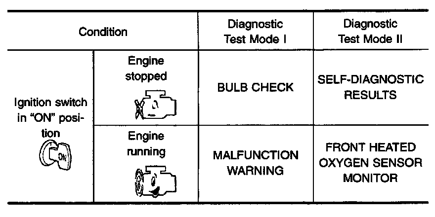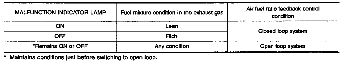 In this mode, the MALFUNCTION INDICATOR LAMP displays the condition of the fuel mixture (lean or rich) which is monitored by the front heated oxygen sensor.