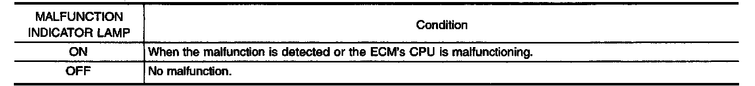 ON : When the malfunction is detected or the ECM's CPU is malfunctioning.