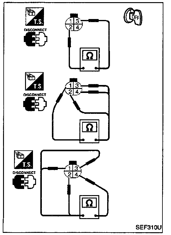 Check continuity between terminals (2) and (1), (3) and (2).