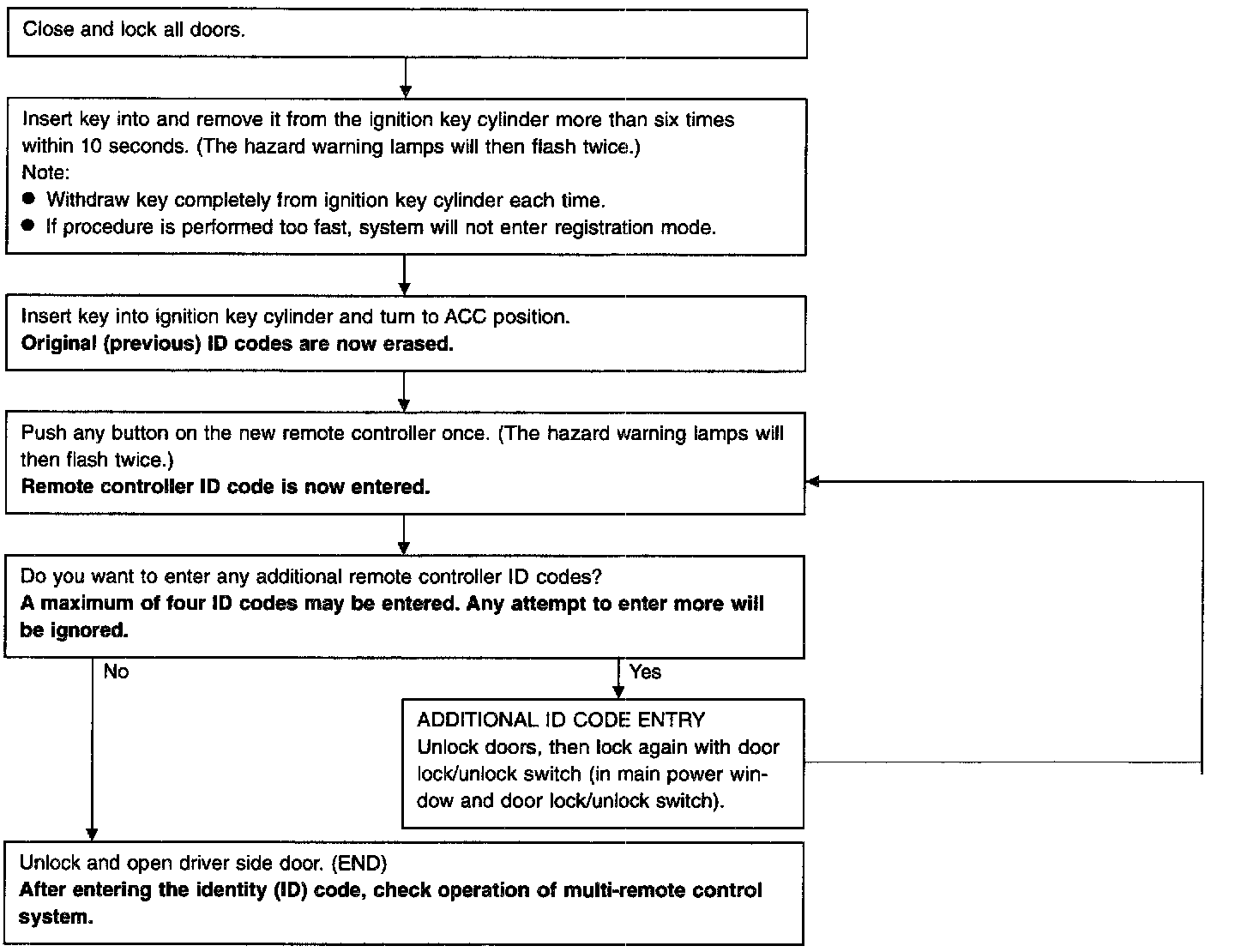 - If you need to activate more than two additional new remote controllers, repeat the procedure "Additional ID code entry" for each new remote controller.