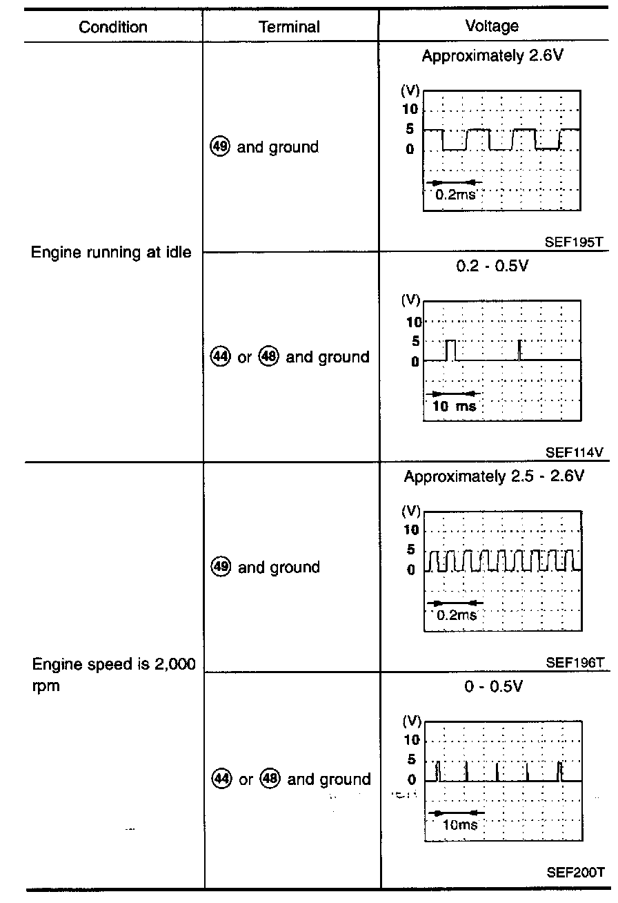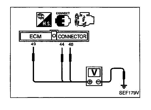 2. Check voltage between ECM terminal [49] and ground, ECM terminal [44] or [48] and ground.