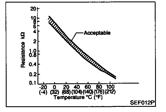 The engine coolant temperature sensor is used to detect the engine coolant temperature. The sensor modifies a voltage signal from the ECM. The modified signal returns to the ECM as the engine coolant temperature input. The sensor uses a thermistor which is sensitive to the change in temperature. The electrical resistance of the thermistor decreases as temperature increases.