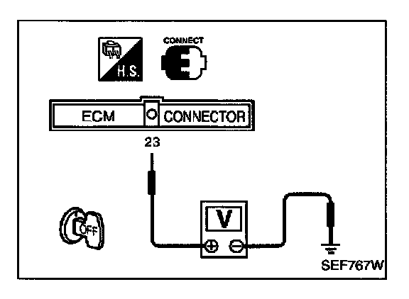 3. Check voltage between ECM terminal [23] (Throttle position sensor signal) and ground.