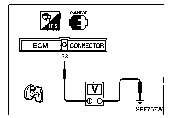 3. Check voltage between ECM terminal [23] (Throttle position sensor signal) and ground.
