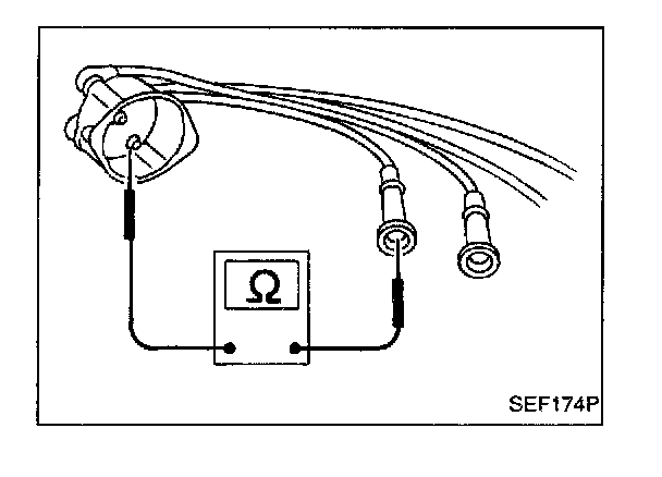 If the resistance exceeds the above specification, inspect ignition wire to distributor cap connection. Clean connection or replace the ignition wire with a new one.