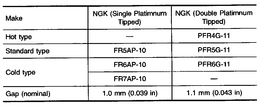 Spark plug (Single platinum-tipped type)