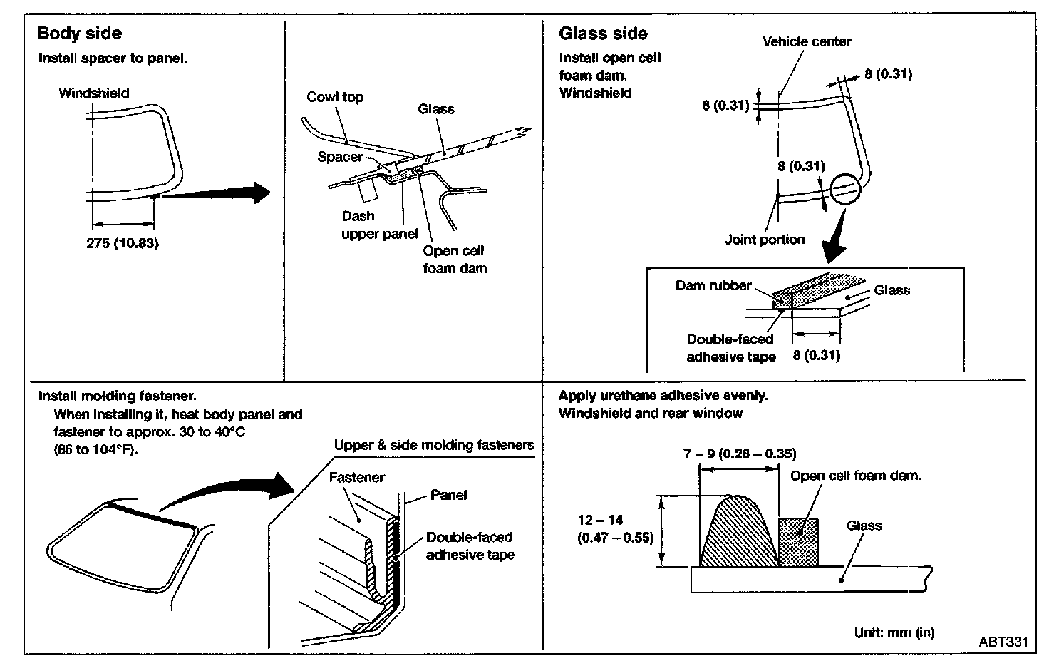 - Window glass is held in place by urethane adhesive.