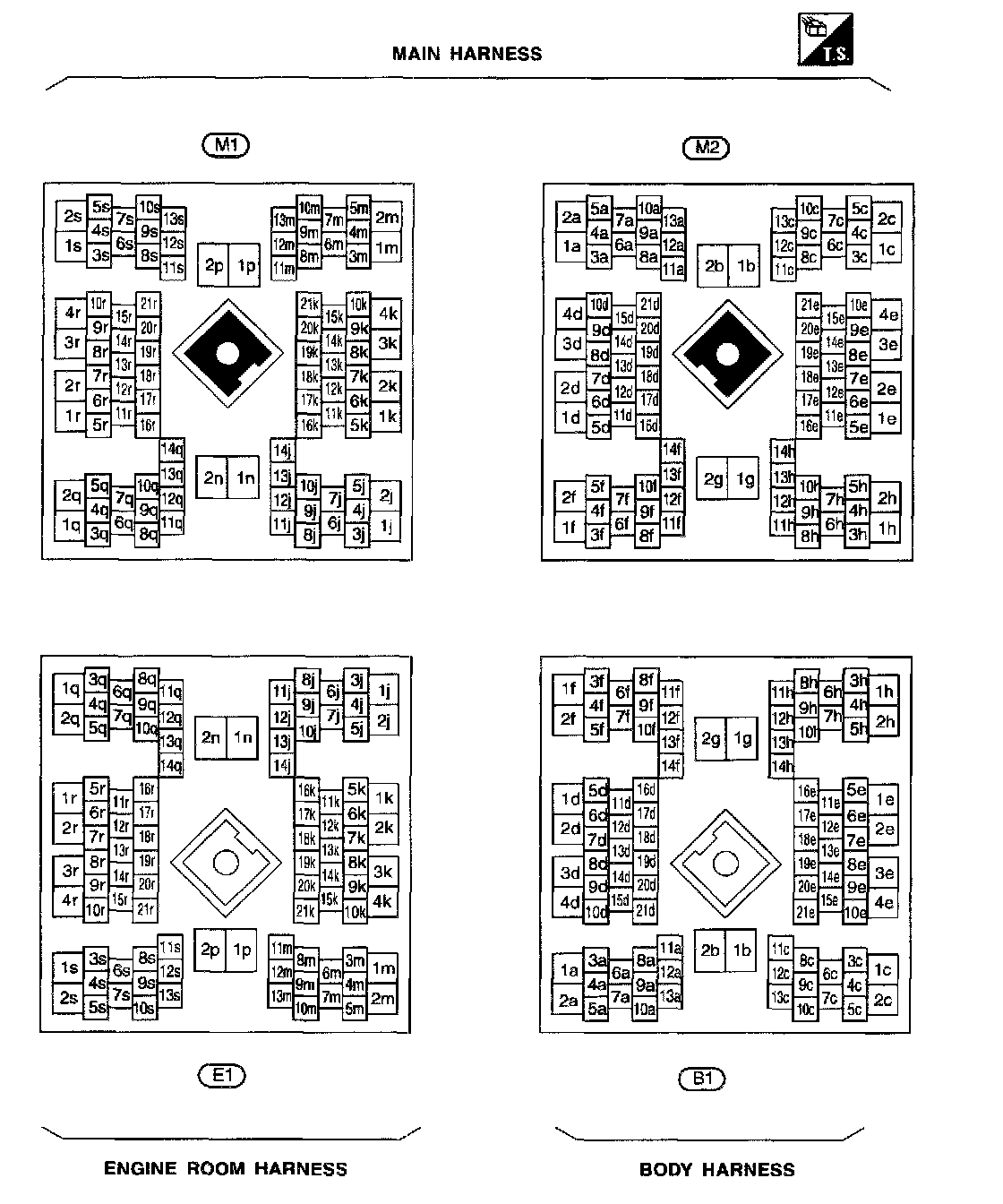Fuse Block - Junction Box (J/B) Terminal Arrangement (E2, E3, E4, M10, M81, M91):
