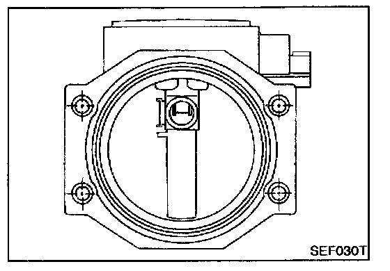 5. If NG, remove mass air flow sensor from air duct. Check hot wire for damage or dust.