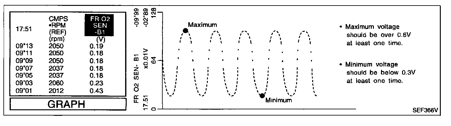 - "FR O2 SEN-B1 (-B2)" voltage never exceeds 1.0 V.