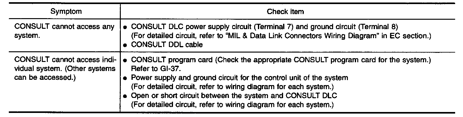 If the CONSULT cannot diagnose the system properly, check the following items.