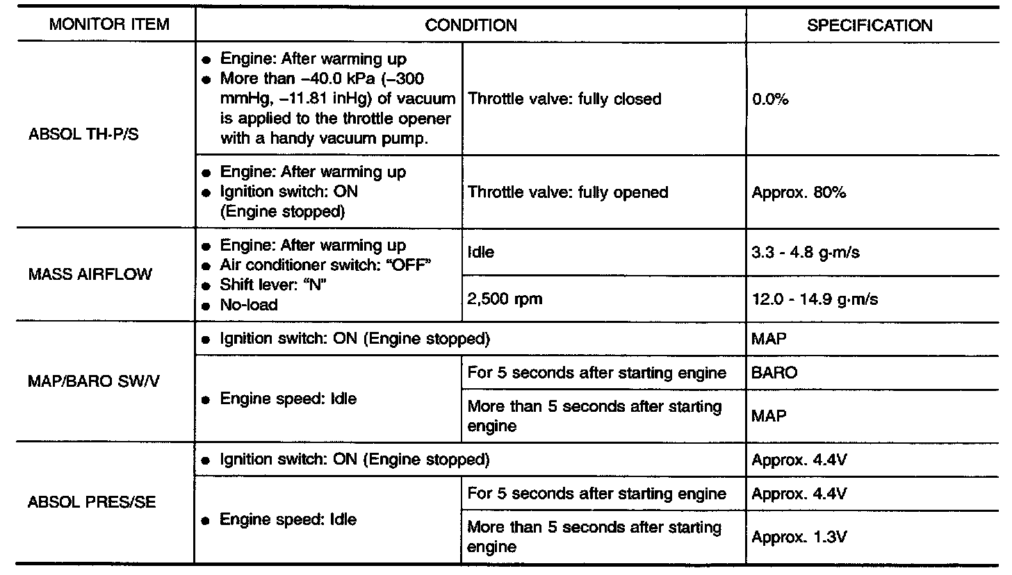 - Specification data are output/input values which are detected or supplied by the ECM at the connector.