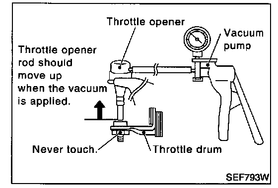 5. Apply vacuum [more than -40.0 kPa (-300 mmHg, -11.81 inHg)] until the throttle drum becomes free from the rod of the throttle opener.