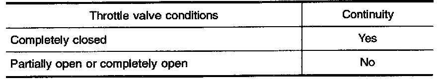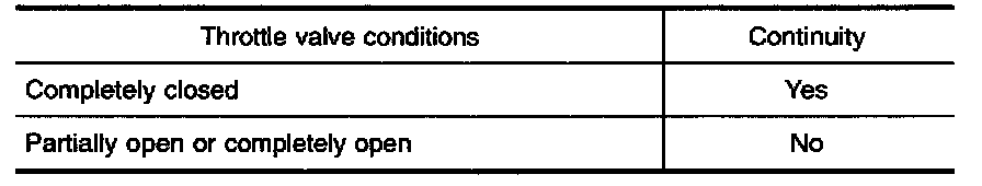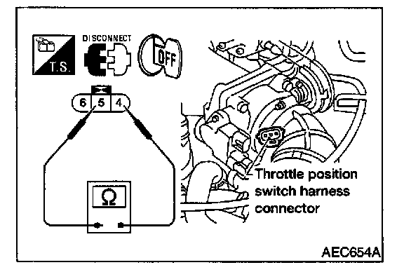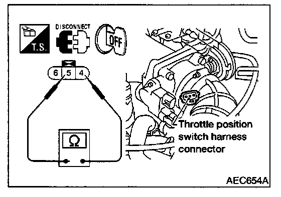 7. Check continuity between closed throttle position switch terminals 4 and 5.