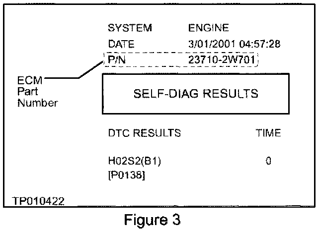 A. Determine the vehicle's ECM Part Number. The ECM P/N is found on top of the CONSULT-II self-diagnosis printout (see Figure 3), or by CONSULT ECM P/N Selection.