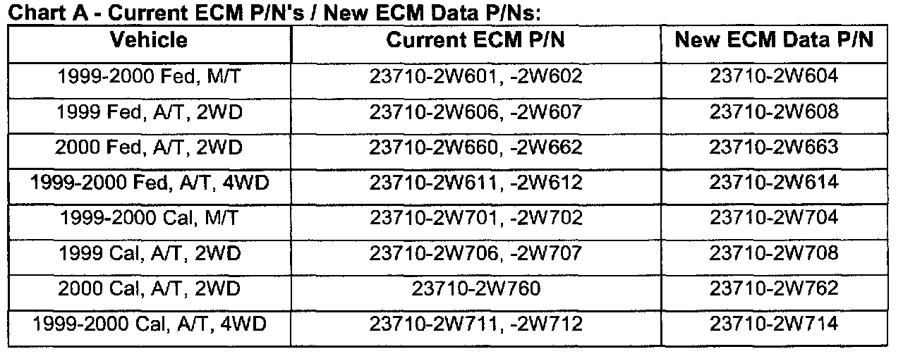 ^ If the ECM P/N in the vehicle matches one of those listed under "Current ECM P/N" in the above chart proceed to Step 3 perform ECM reprogramming.