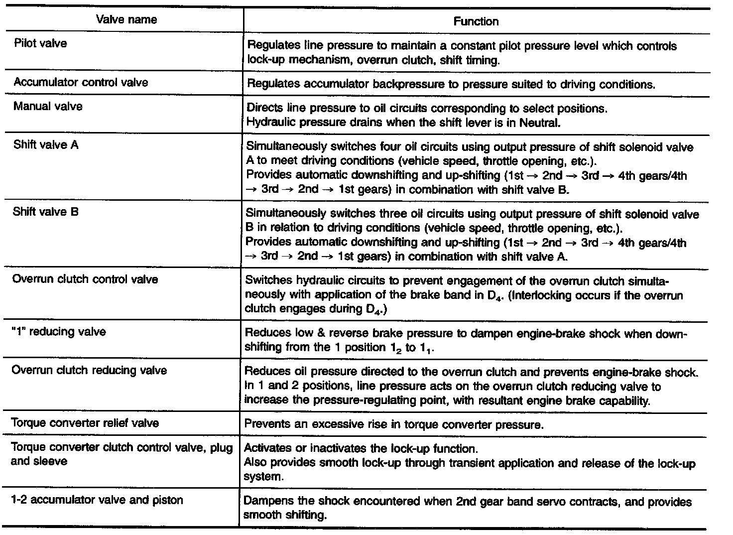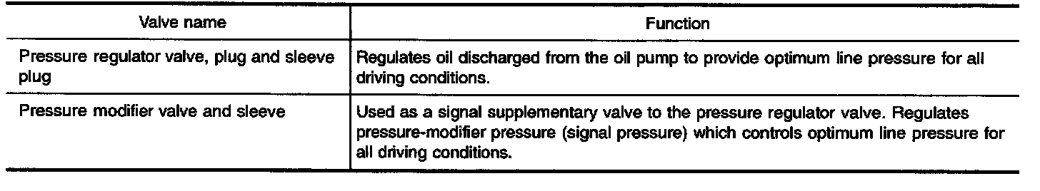 Hydraulic pressure on the clutch and brake is electronically controlled through the line pressure solenoid valve to accommodate engine torque. This results in smooth shift operation.