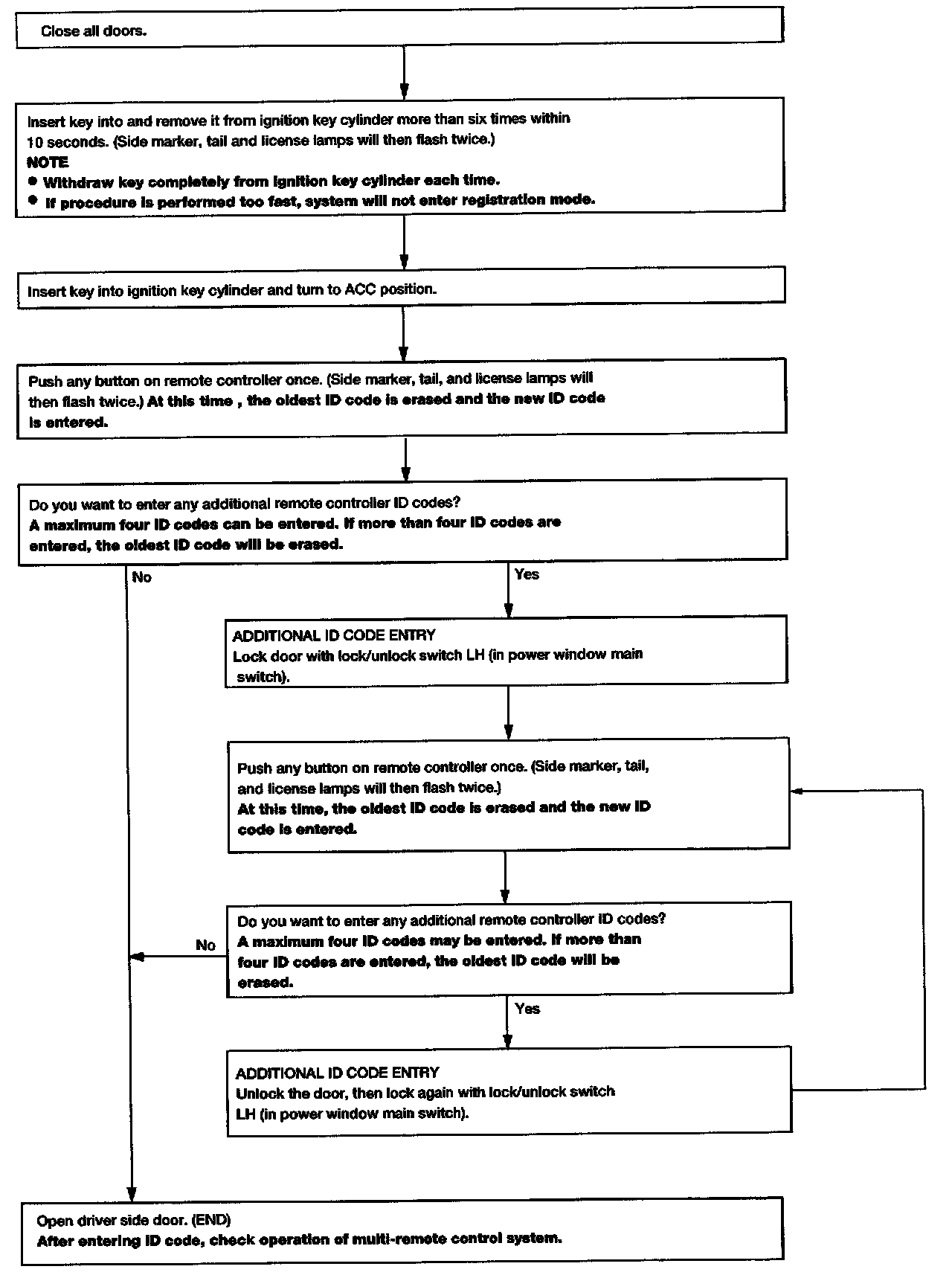 - A maximum of four ID codes may be entered. When more than four ID codes are entered, the ID oldest code will be erased.