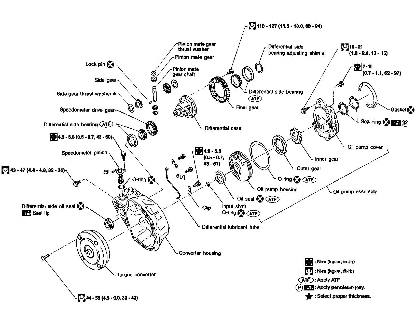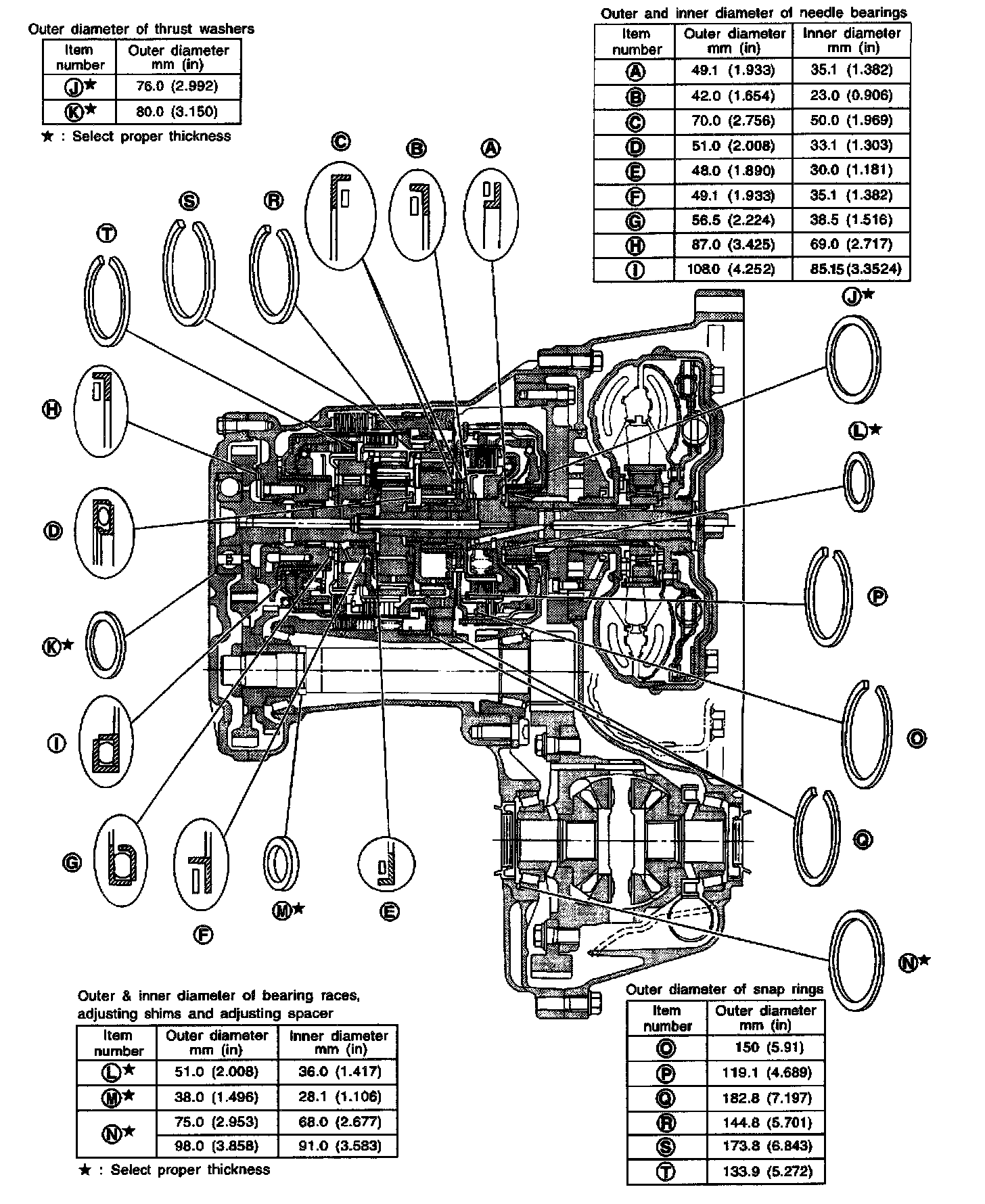 Locations of Needle Bearing, Thrust Washers and Snap Rings