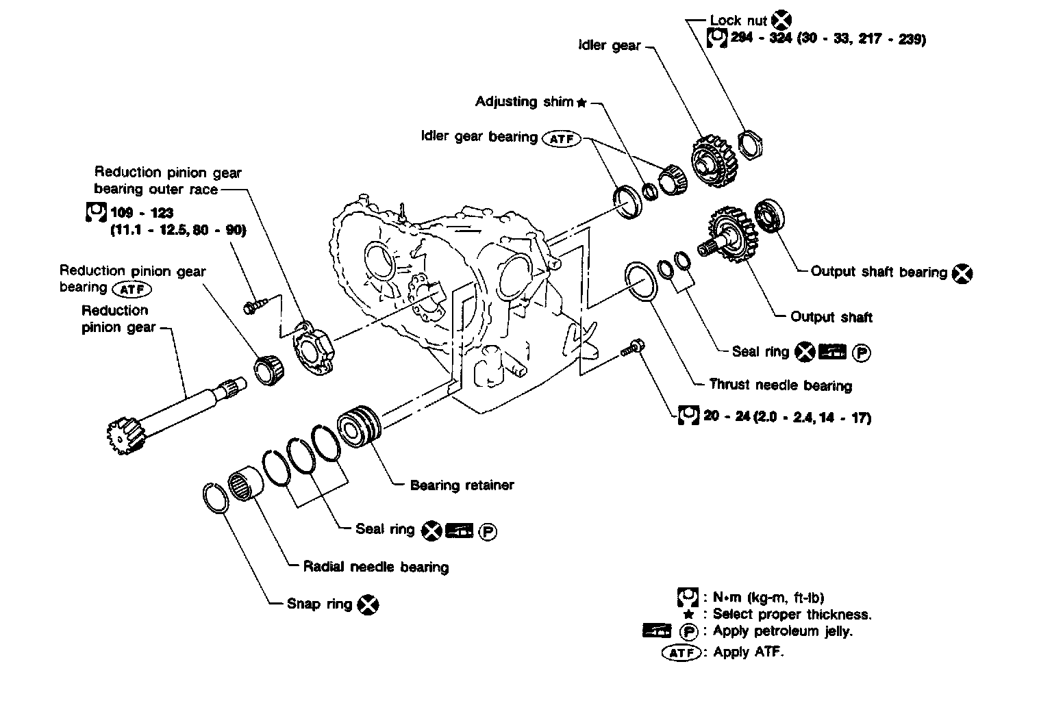 Output Shaft, Idler Gear, Reduction Pinion Gear and Bearing Retainer