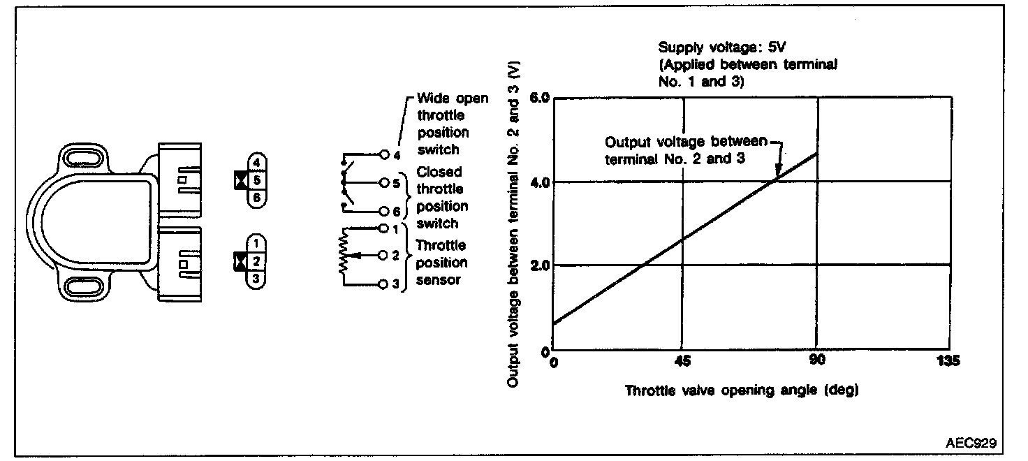 Idle position of the throttle valve is determined by the ECM receiving the signal from the throttle position sensor. This sensor controls engine operation such as fuel cut. On the other hand, the "Wide open and closed throttle position switch", which is built into the throttle position sensor unit, is not used for engine control.