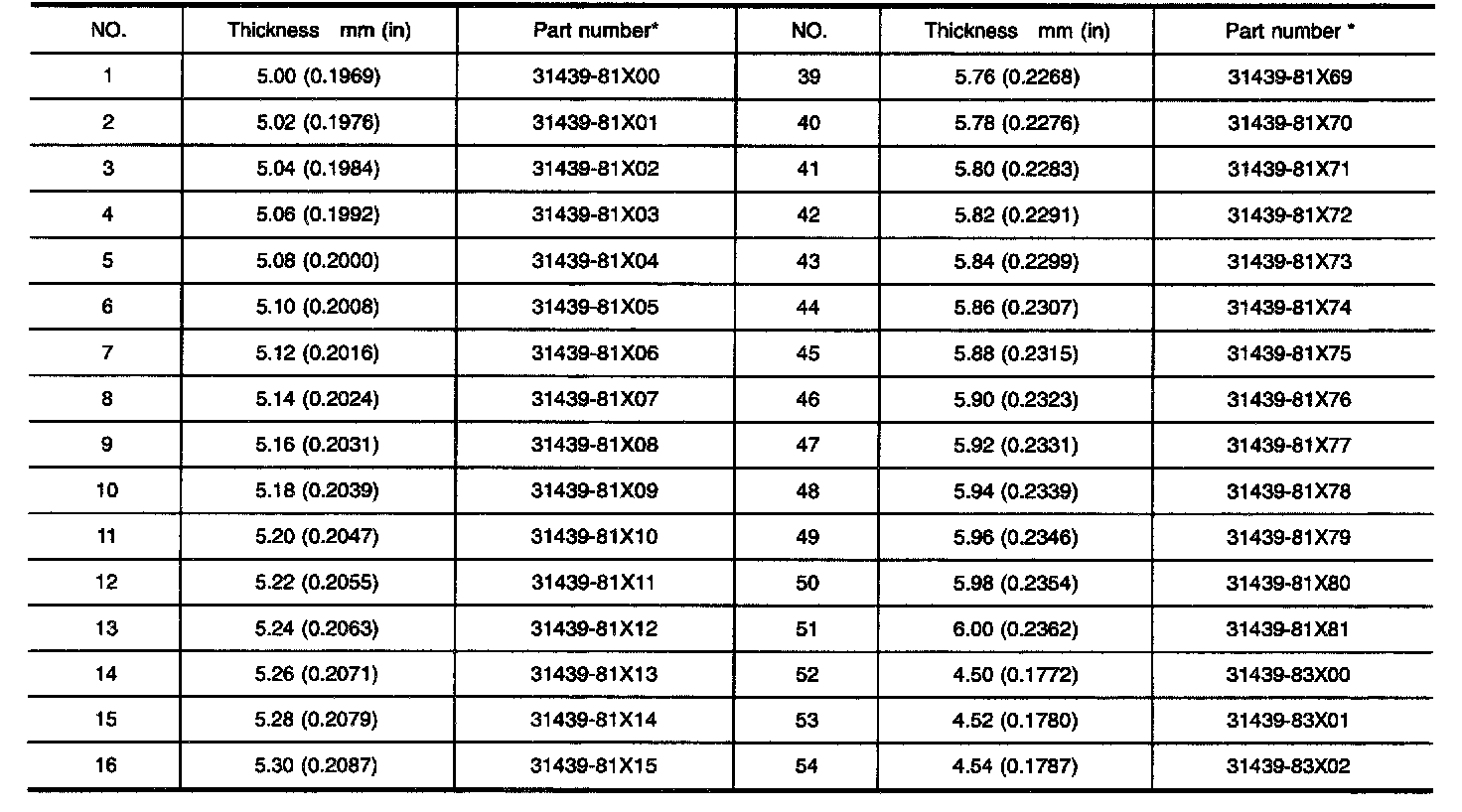 OUTPUT SHAFT ADJUSTING SHIMS