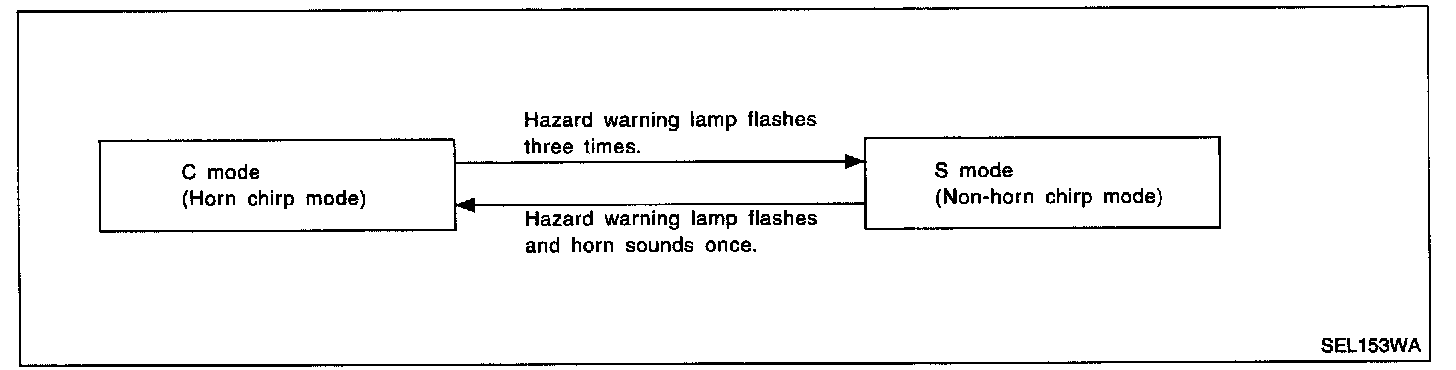The hazard and horn reminder has C mode (horn chirp mode) and S mode (non-horn chirp mode).