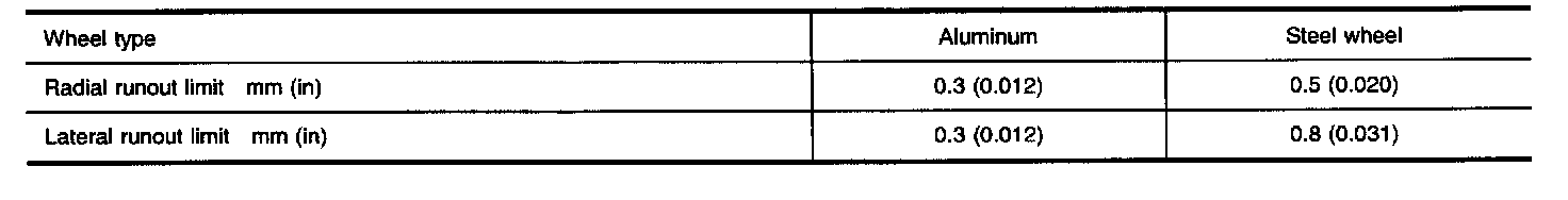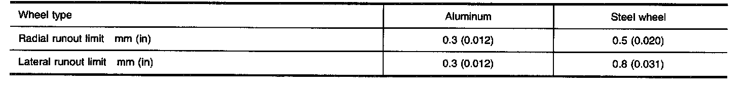2. Check wheels for deformation, cracks and other damage. If deformed, remove wheel and check wheel runout.