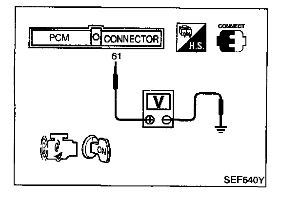 3. Check voltage between PCM terminal 61 (Mass air flow sensor signal) and ground.